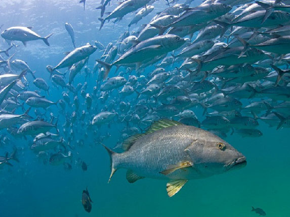 ncluding the protected totuava; yellowtail, amberjack, pompanos, and roosterfish; dorado (mahimahi), wahoo, and bluefin, albacore, and yellowfin tuna, which can grow to sizes exceeding 180 kilograms (400 lbs.); various types of sea bass, including garropa (grouper) and cabrilla; flounder and halibut; snappers (pargo, including the red snapper, which is called huachinango in Spanish).